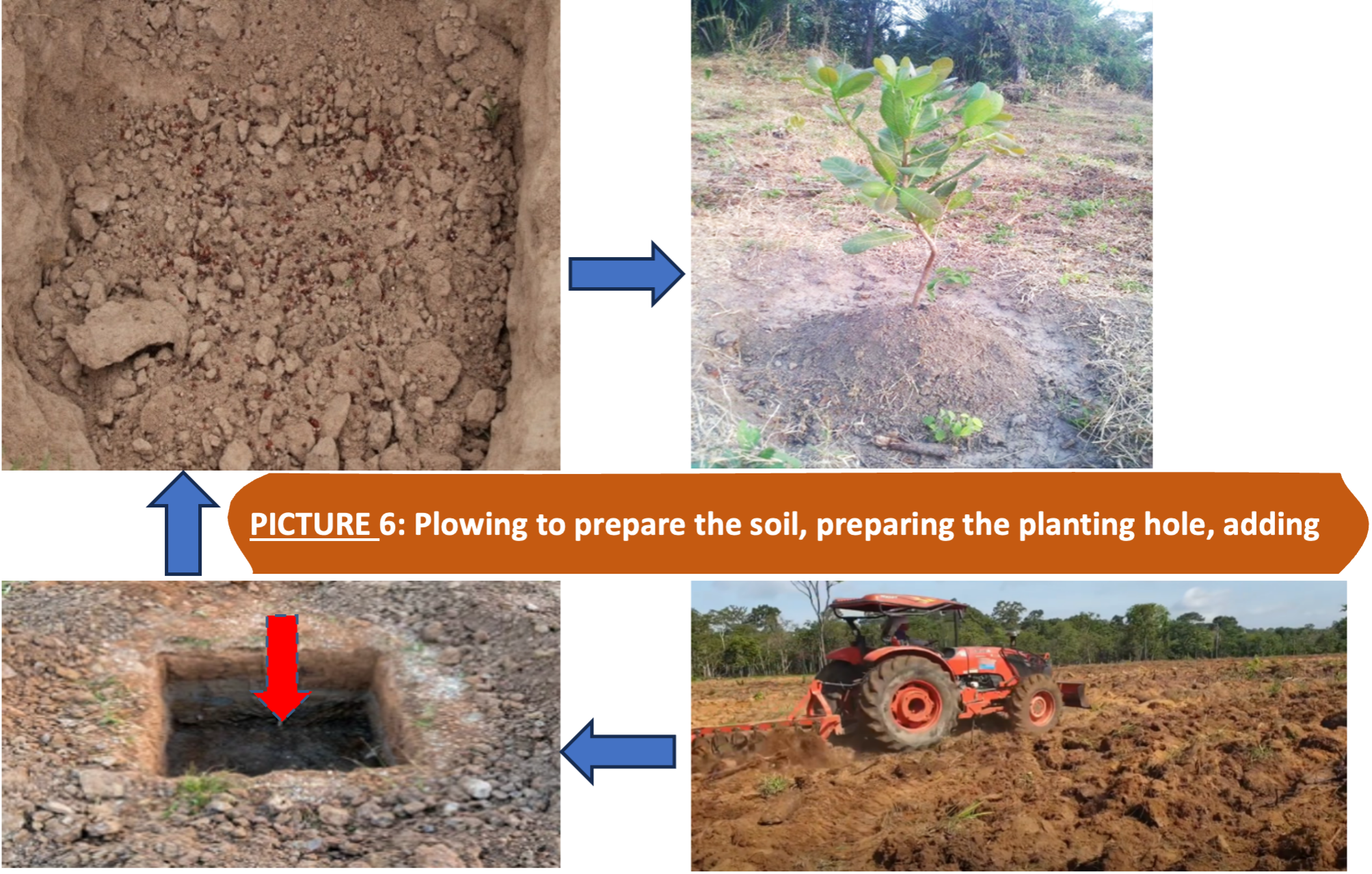Cleaning before land preparation: Clear the forest and burn it, clear old crops and other waste on the land and dispose of them all in and around the field to avoid the spread of pests, diseases and other factors that may interfere with the growth of cashew nuts.