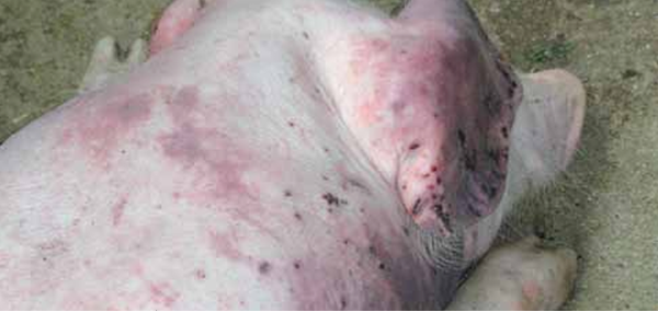 • Pigs have a rhinorrhea (runny nose), difficulty breathing, and some coughing (for piglets).
