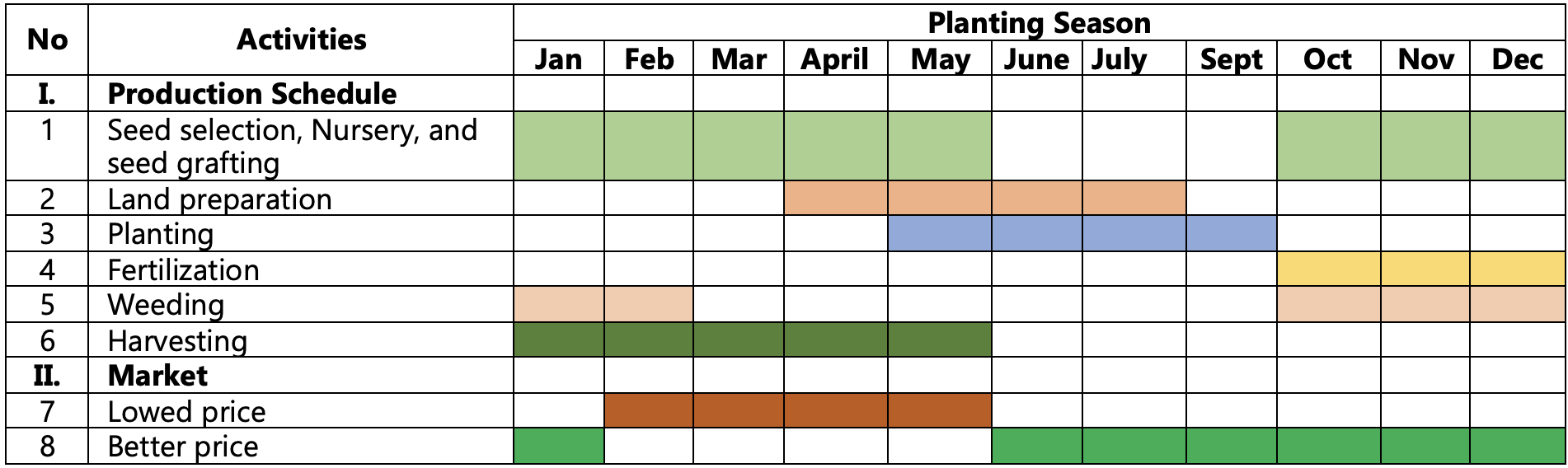 Table 2: Seasonal Calenda for Cashew Nut Harvesting and Demand of Market