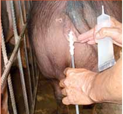 With artificial breeding, sperm from the boar is collected and then inserted through into the uterus of the sow.