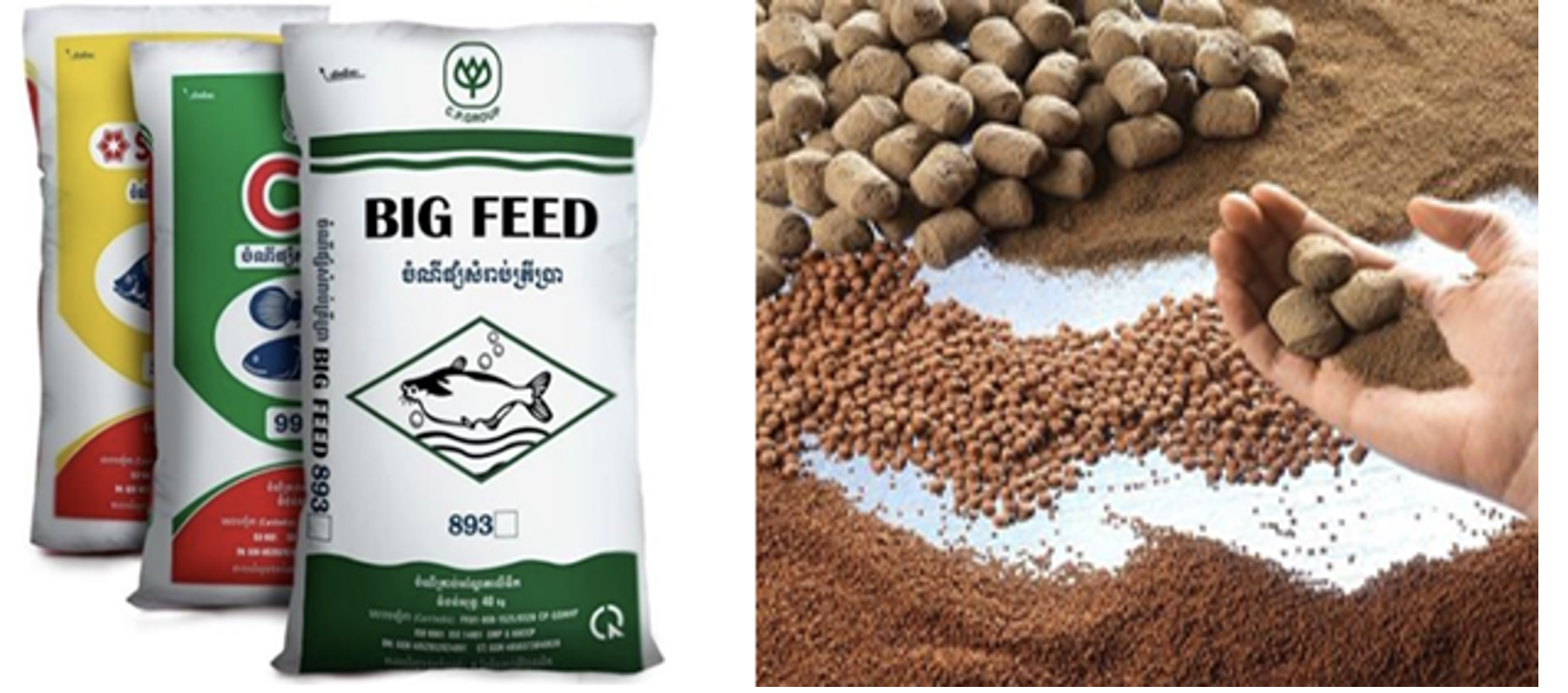 • Pelleted feed is generally expensive, but is widely used in export-oriented industrial fish farming in some large farms in Cambodia because pelleted feed is easy to manage, maintain, use, and achieves results according to the plan.